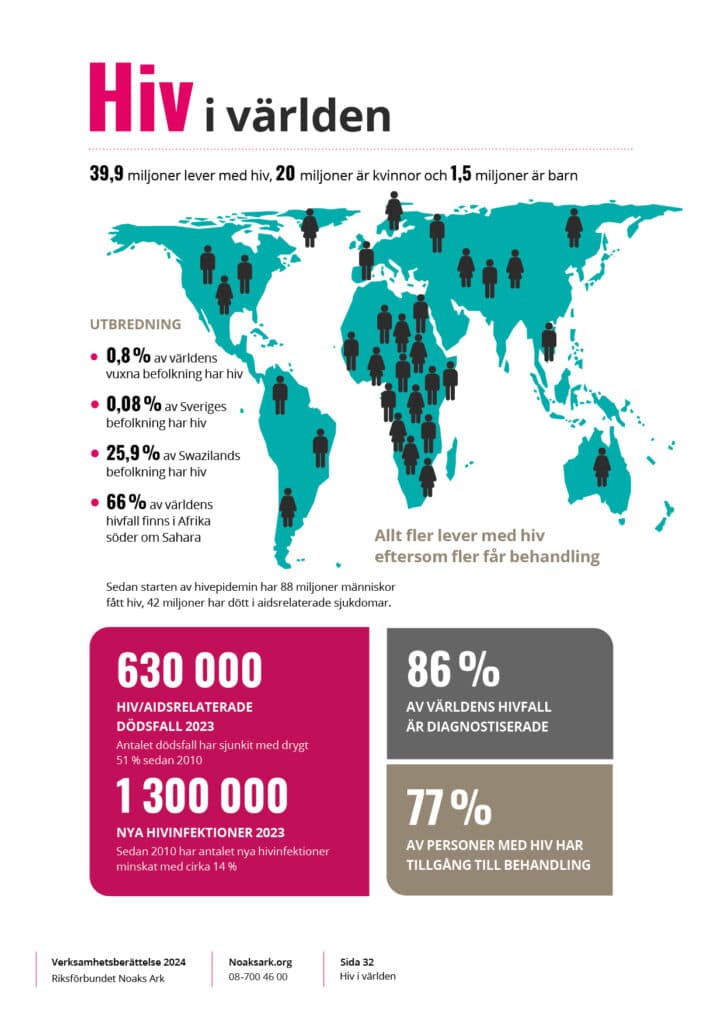 The spread of HIV within Sweden remains stable and limited, with only 13% of all HIV transmissions reported to have occurred within the country. In 2023, Ukraine, Thailand and Uganda were the most common countries of HIV acquisition.