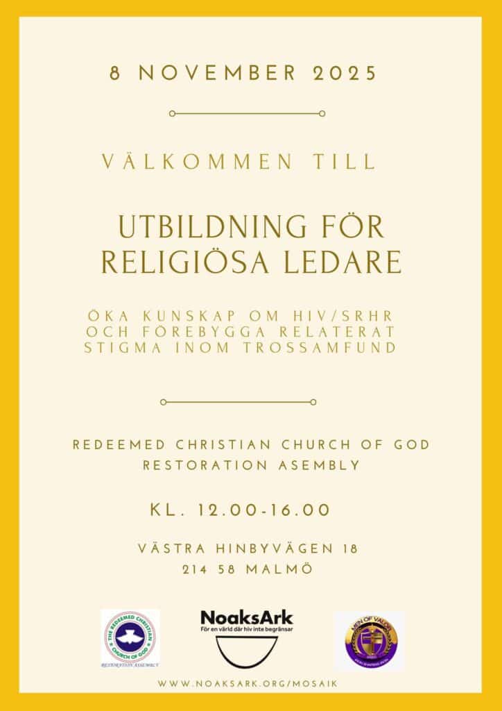 Är du en religiös ledare och vill lära dig mer om hiv och sexuell hälsa och rättigheter?! Då är du väldigt välkommen att delta i vår utbildning för religiösa ledare den 8 november! Utbildning erbjuder…