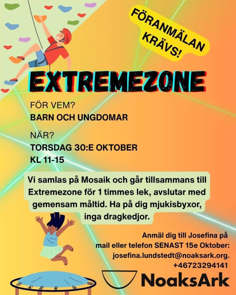 Vi samlas på kontoret och åker gemensamt till ExtremeZone i Malmö för att leka av oss. Efter vi lekt av oss går vi tillsammans för att äta en gemensam lunch som avslut. För vem? Barn...